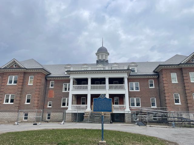 Three main buildings stood on this site over time. An earlier school building was destroyed by fire in the 1850s (possibly through arson), and the second was destroyed in 1903 in fires set by students. The current building, constructed in 1904, still stands today and has now been carefully restored and interpreted.
